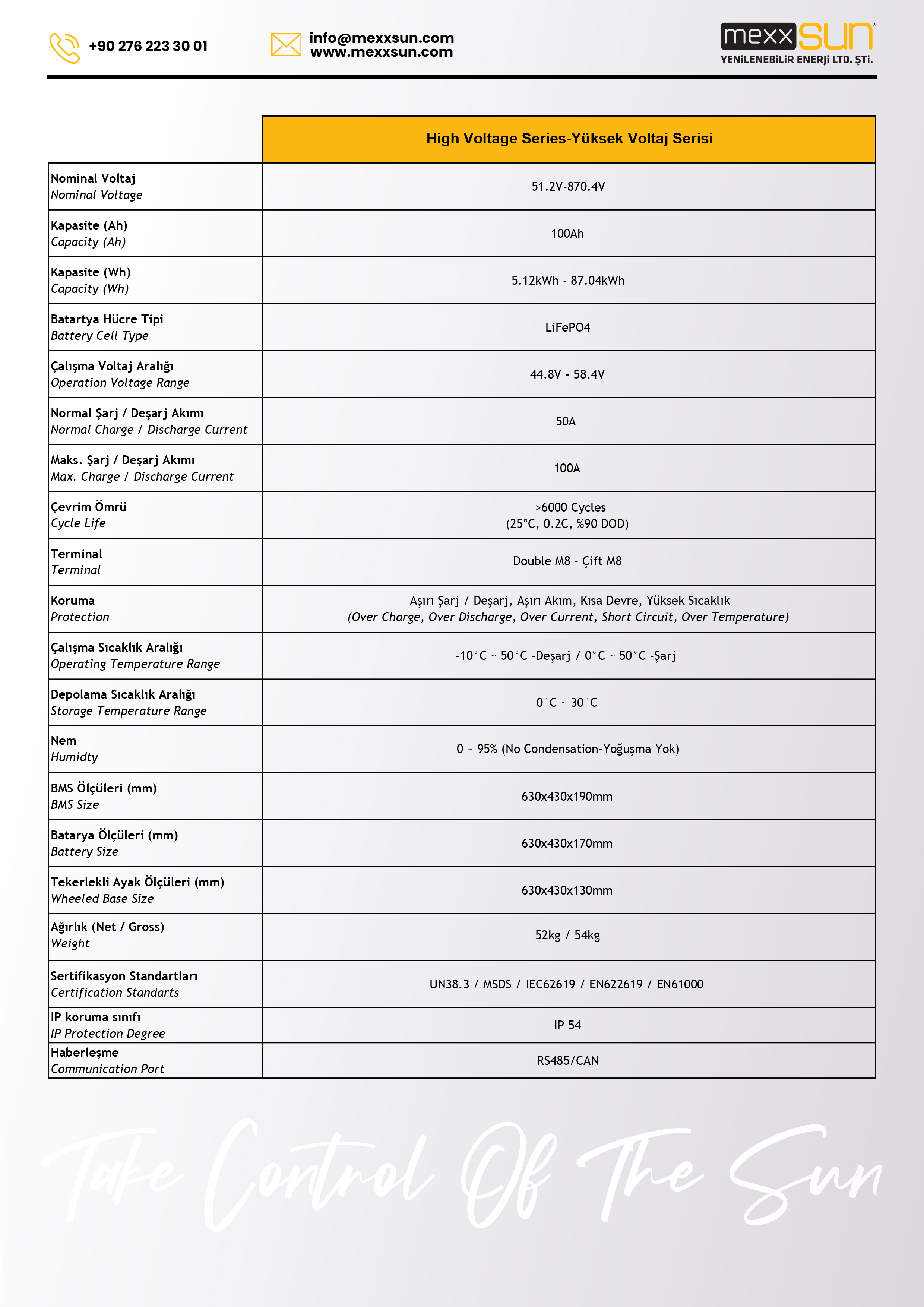 MEXXSUN High Voltage Battery Pack 51.20 kWh