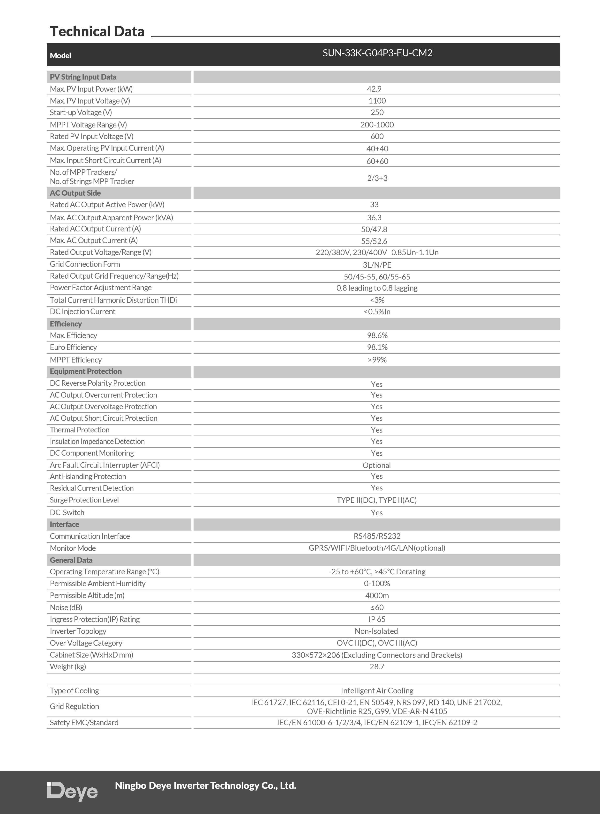 PV Inverter SUN-33K-G04P3-EU-CM2 - 2