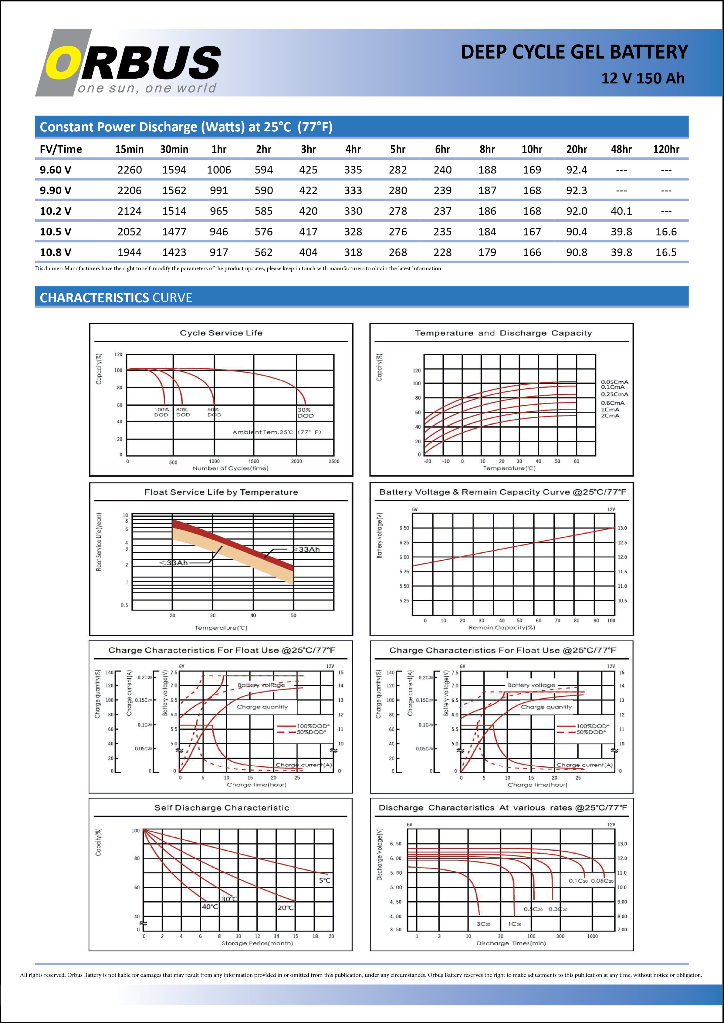 Jel akü 12V 150Ah Orbus - 1